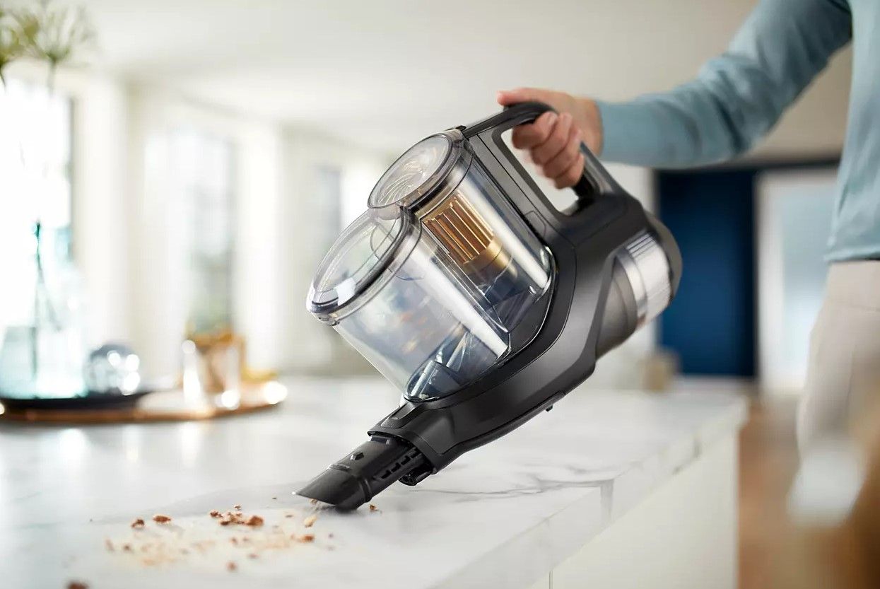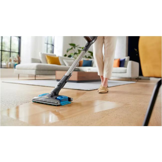 Bezprzewodowy odkurzacz Philips Aqua Plus z serii 8000 jest wyposażony w wyjątkową nasadkę Aqua Plus, która umożliwia usuwanie różnych rodzajów brudu jednocześnie, od kurzu po lepkie plamy, z mocą podwójnego zasysania. Ponadto oddzielna nasadka 360° tylko do odkurzania, odkurzacz ręczny oraz dodatkowe nasadki zapewniają maksymalizację wykorzystania urządzenia.
