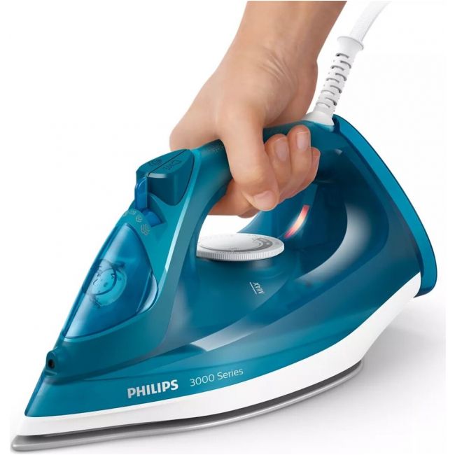 Nasze żelazko parowe z serii 3000 ułatwia prasowanie dzięki silnemu uderzeniu pary, które rozprasowuje nawet najbardziej oporne zagniecenia. Ceramiczna stopa żelazka zapewnia gładkie przesuwanie żelazka, a zbiornik wody o pojemności 300 ml jest wystarczająco duży, aby można było prasować mniejsze ilości ubrań bez konieczności ponownego napełniania.