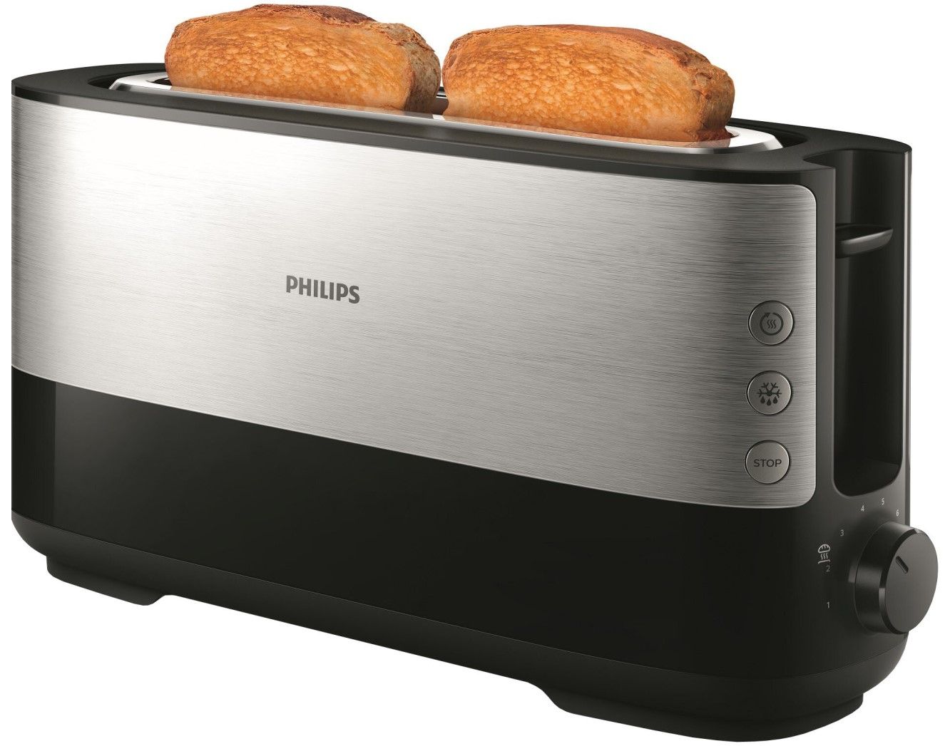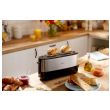 Wykonany ze stali nierdzewnej toster z długim otworem i 8 ustawieniami zapewnia równomierne opiekanie każdego rodzaju chleba, niezależnie od upodobań smakowych. Na wbudowanym ruszcie do podgrzewania podgrzejesz każdy rodzaj pieczywa — od bułeczek po croissanty.