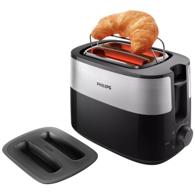 Kompaktowy toster z 8 ustawieniami, wyposażony w 2 duże regulowane otwory, które zapewniają równomierne opiekanie każdego rodzaju pieczywa. Wbudowany ruszt pozwala także łatwo podgrzewać bułki, ciastka i rogaliki.