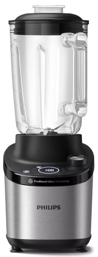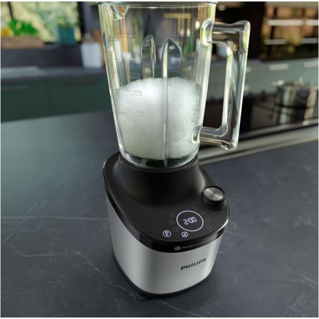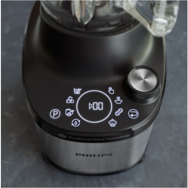 Programy z określonym czasem i prędkością przyrządzania Twoich ulubionych dań można szybko wybrać na cyfrowym wyświetlaczu. Należą do nich smoothie, masło orzechowe, deser, zupa i sos. Istnieje również możliwość skorzystania z funkcji kruszenia lodu oraz czyszczenia.