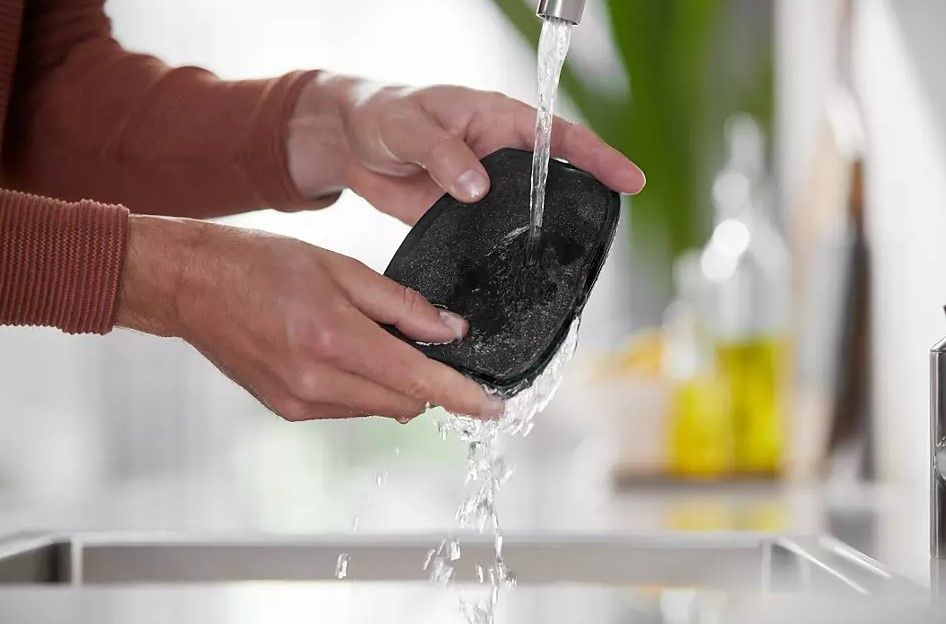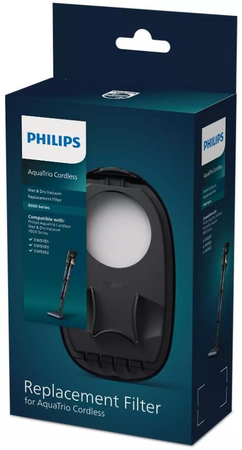 Oryginalny wymienny filtr powietrza zgodny z bezprzewodowym odkurzaczem z funkcją aktywnego mycia Philips AquaTrio serii 9000. Zestaw zawiera obudowę filtra (w tym górną i dolną pokrywę) oraz przeznaczony do mycia filtr piankowy. Zaleca się wymianę filtra co 6 miesięcy.