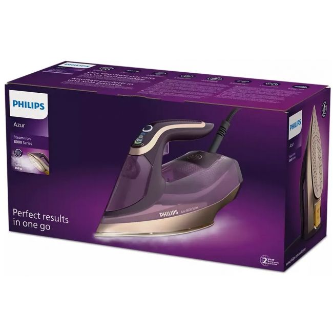 Nasza nowa seria Philips Azur 8000 zapewnia idealne prasowanie. Dzięki silnemu strumieniowi pary 260 g poradzi sobie szybko nawet z najtrudniejszymi zagnieceniami. Moc 3000 W sprawia, że żelazko szybko się nagrzewa, a silny ciągły strumień pary gwarantuje doskonałe rezultaty prasowania.