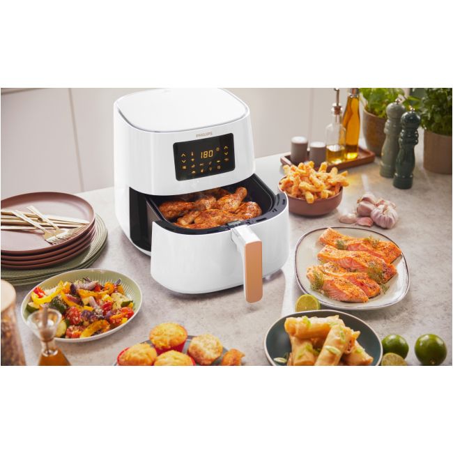 Urządzenie AirFryer firmy Philips oferuje szeroki wachlarz możliwości: smażenie, pieczenie, grillowanie, prażenie, suszenie, podpiekanie, rozmrażanie, rozgrzewanie i nie tylko.