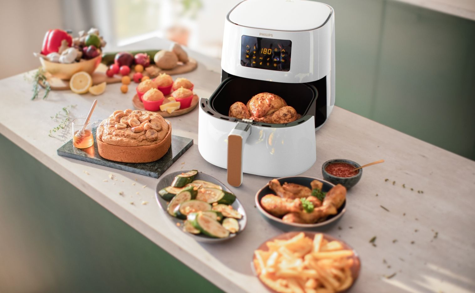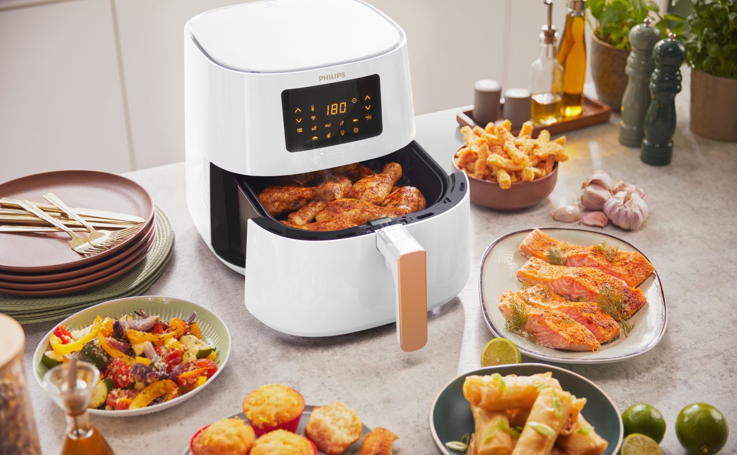Urządzenia Airfryer firmy Philips są wydajniejsze niż tradycyjne piekarniki — przygotowywanie pysznych posiłków zużywa nawet o 70% mniej energii i zajmuje o 50% mniej czasu****.