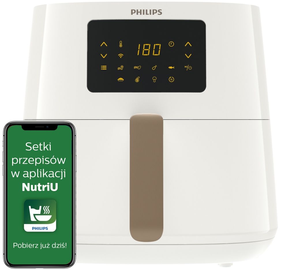 Znajdź setki* smacznych dań, które możesz przyrządzić w frytownicy Airfryer w połączeniu z aplikacją NutriU. Im częściej korzystasz z systemu NutriU, tym bardziej spersonalizowane rekomendacje otrzymujesz. Aplikację NutriU można łatwo pobrać ze sklepu Google Play lub Apple Store, a następnie sparować z frytownicą Airfryer.