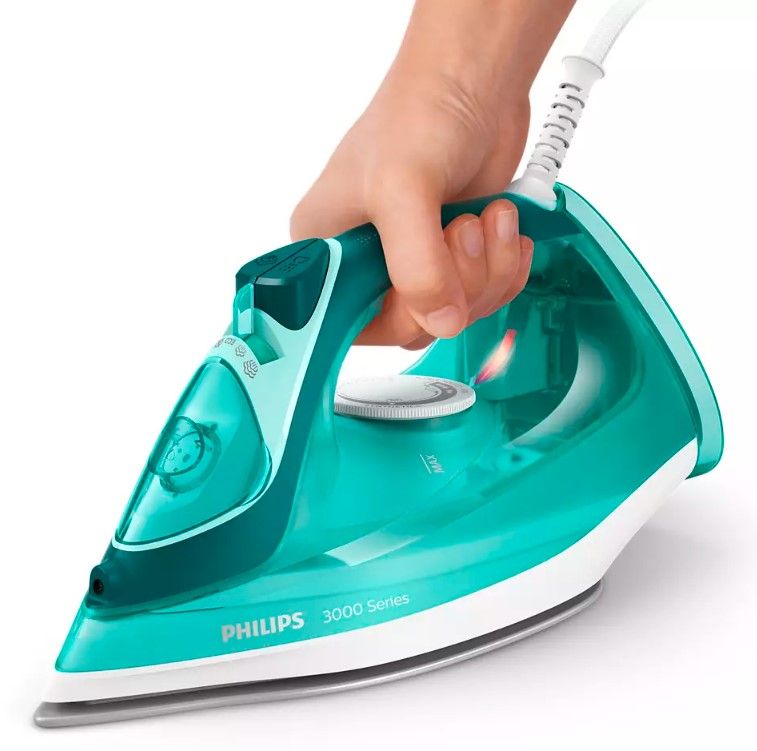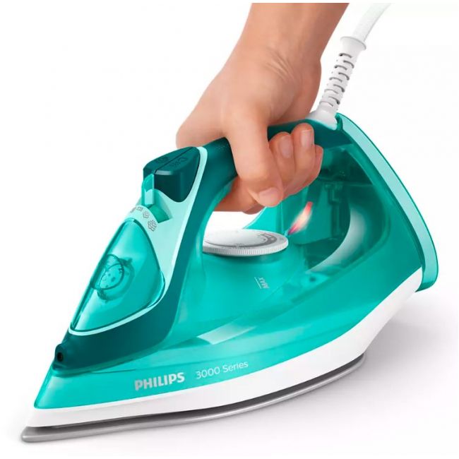 Nasze żelazko parowe z serii 3000 ułatwia prasowanie dzięki silnemu uderzeniu pary, które rozprasowuje nawet najbardziej oporne zagniecenia. Ceramiczna stopa żelazka zapewnia gładkie przesuwanie żelazka, a zbiornik wody o pojemności 300 ml jest wystarczająco duży, aby można było prasować mniejsze ilości ubrań bez konieczności ponownego napełniania.