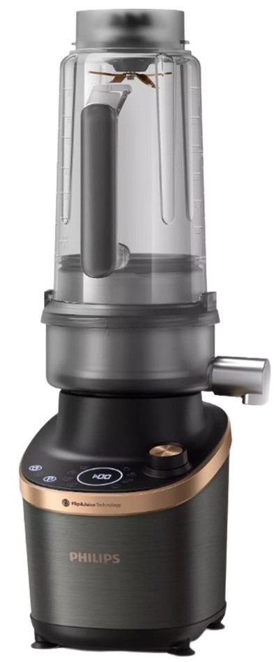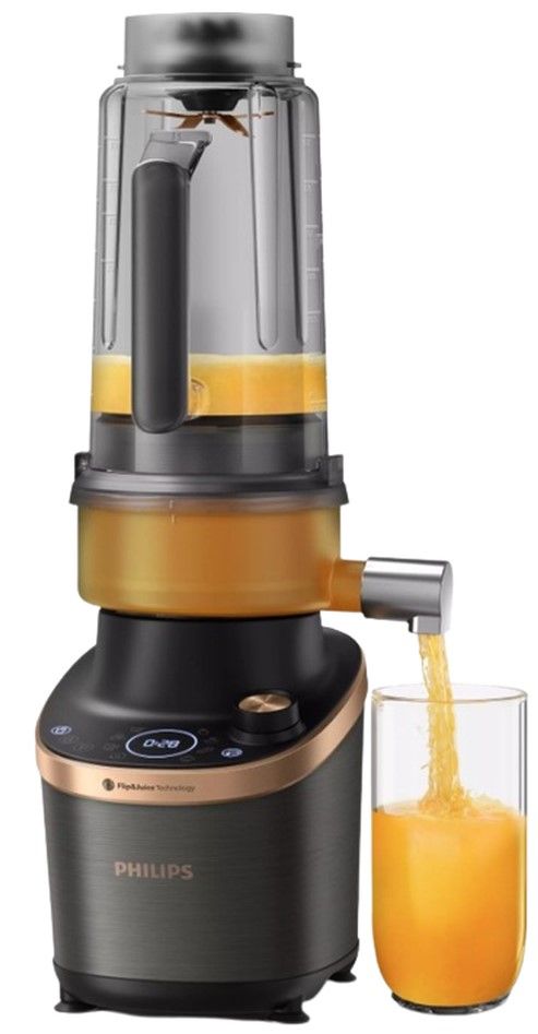 Nowy blender Flip & Juice jest naszym pierwszym blenderem o wysokiej prędkości z modułem sokowirówki. Rewolucyjny dzbanek i wbudowany filtr gwarantują, że konsystencja napojów zadowoli wszystkich członków rodziny. Od idealnie gładkich smoothies aż do klarownych soków — nasz najbardziej zaawansowany blender zapewnia pełną różnorodność. Dzięki połączeniu funkcji blendera i sokowirówki pozwala zaoszczędzić miejsce w kuchni.