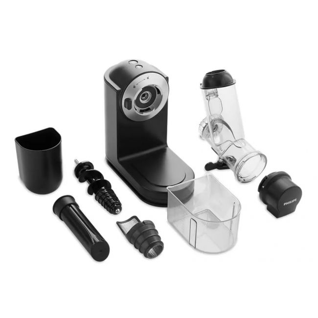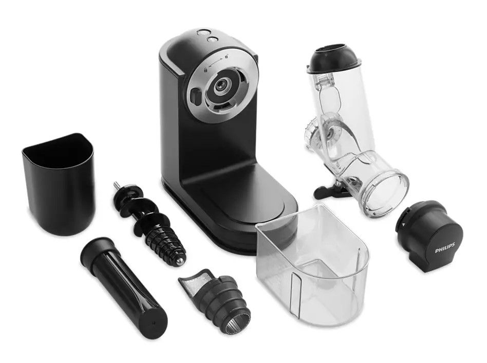 Dzięki wyjątkowej konstrukcji nową wyciskarkę do soku można szybko złożyć i rozpocząć użytkowanie. Pozwala ona również na łatwe rozłożenie i szybkie wyczyszczenie. Wszystkie odłączane elementy można bezpiecznie umyć w zmywarce, co jeszcze bardziej ułatwia czyszczenie po codziennym wyciskaniu soku.