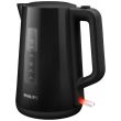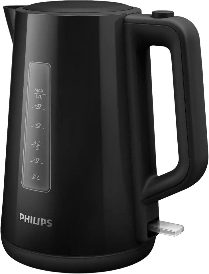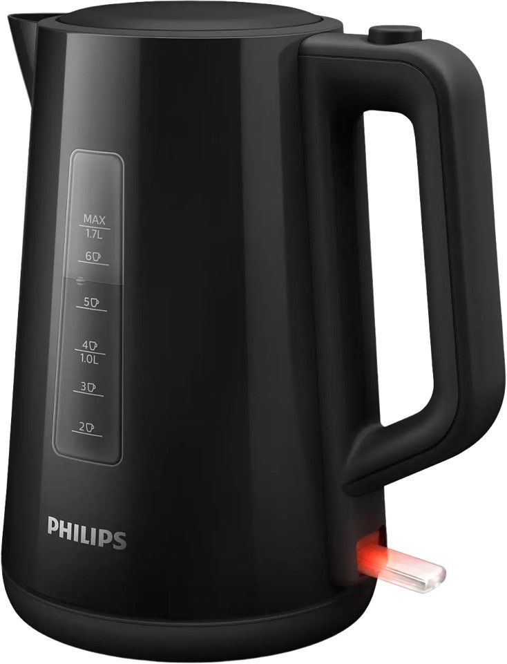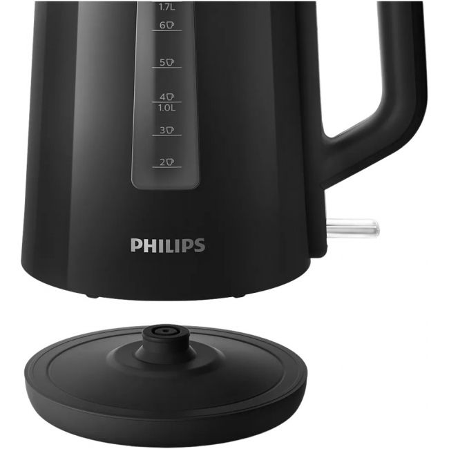 Nowy plastikowy czajnik firmy Philips o pojemności 1,7 l z automatycznie otwieraną pokrywką i wskaźnikiem umożliwia łatwe i szybkie przygotowanie ulubionego gorącego napoju.