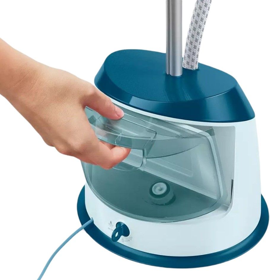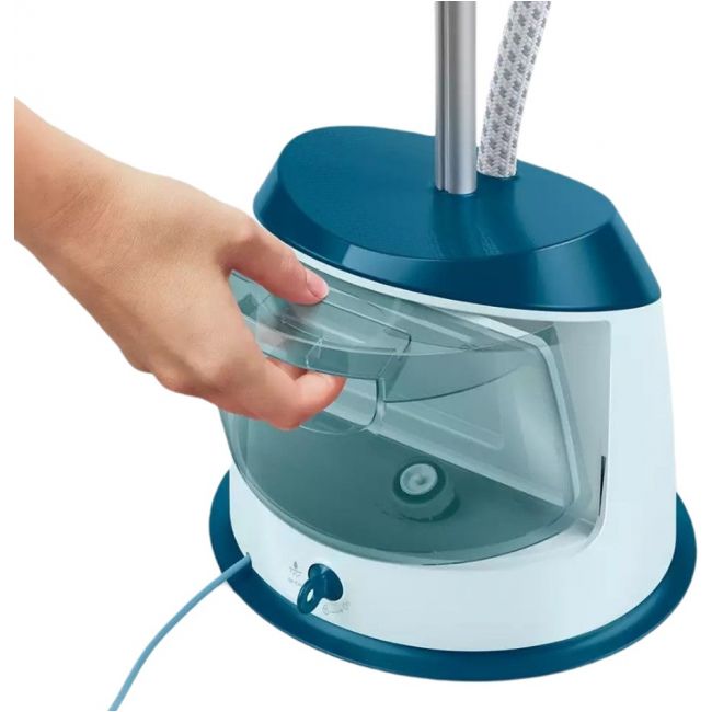 Duży, odłączany zbiornik wystarczy do odświeżenia większej ilości ubrań bez konieczności uzupełniania wody. Większy otwór zbiornika sprawia, że napełnianie go pod kranem jest poste i wygodne.