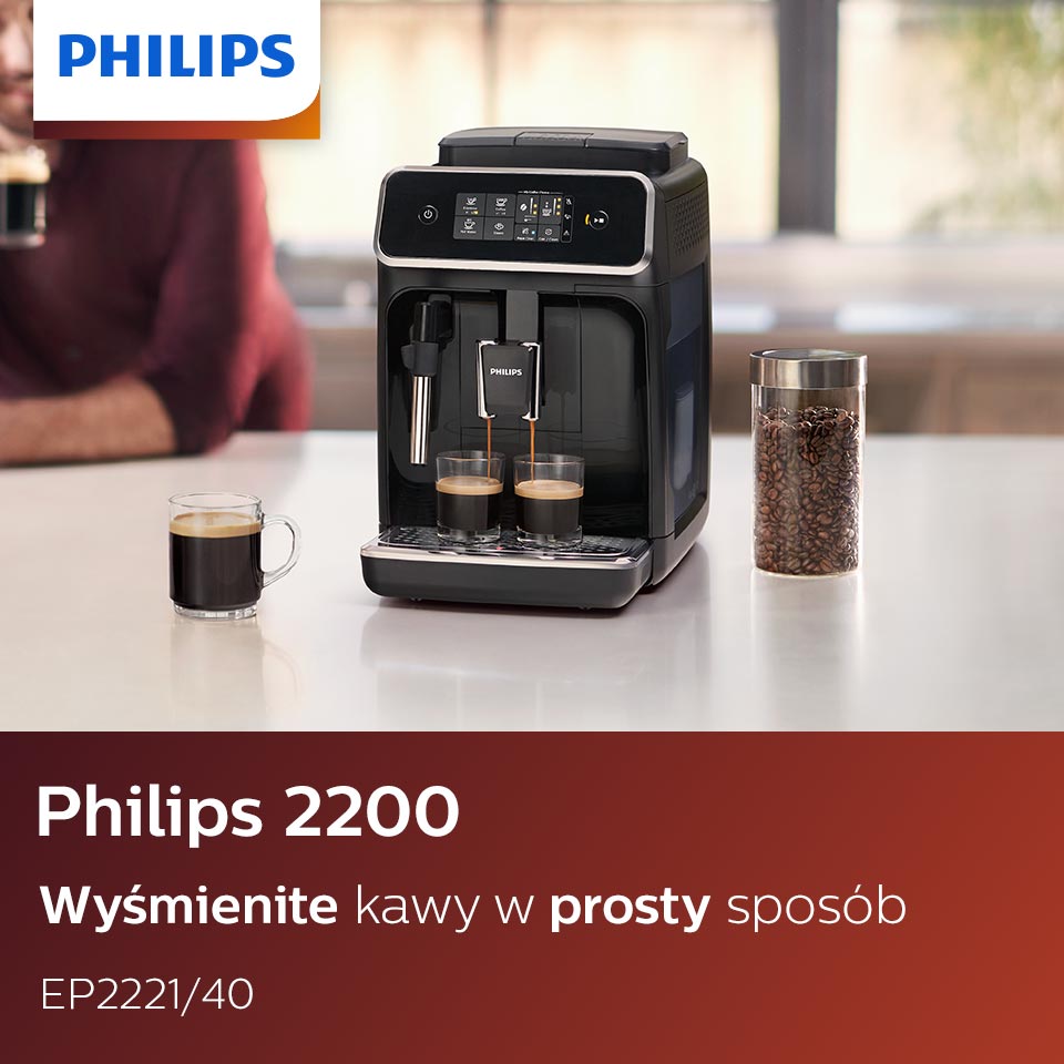 Ekspres Philips 2200 posiada czytelny, dotykowy panel sterowania, który sprawia, że obsługa urządzenia jest wyjątkowo prosta. Wystarczy wybrać rodzaj kawy i dotknąć odpowiednią ikonkę, a aromatyczny napój zostanie błyskawicznie zaparzony!