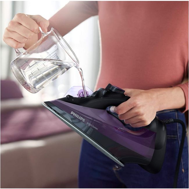 Zbiornik tego żelazka można napełniać zwykłą wodą z kranu. Wbudowana funkcja czyszcząca Calc-Clean ułatwia usuwanie kamienia z żelazka i gwarantuje najwyższą wydajność.