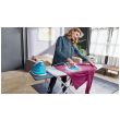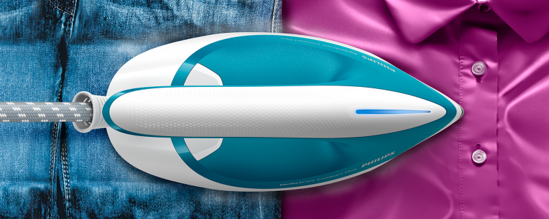 Lekkie i kompaktowe żelazko jest niezwykle wydajne. Ma bardzo silny wyrzut pary, który umożliwia wygodne prasowanie w pionie np. firanek lub ubrań z aplikacjami.