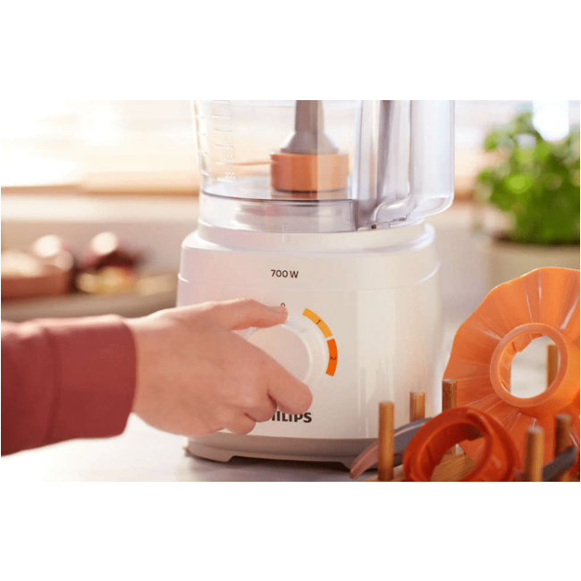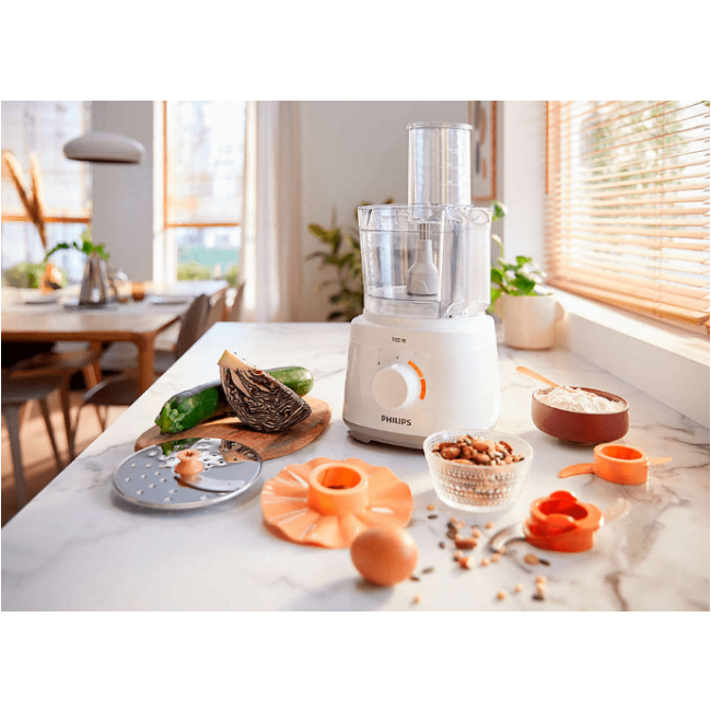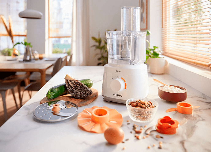 Jeśli uwielbiasz zdrowe, domowe posiłki, ale brakuje Ci na co dzień czasu, zachwycisz się kompaktowym robotem kuchennym Philips Daily. Stworzyliśmy go specjalnie z myślą o osobach prowadzących intensywny tryb życia. Z jego pomocą przygotujesz doskonałe potrawy szybko i bez wysiłku.