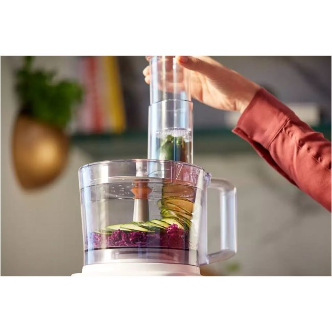 Dzięki ponad 16 funkcjom masz nieograniczone możliwości: przygotujesz posiłki, chleb, sosy i nie tylko. Wykorzystaj wielofunkcyjne akcesoria wysokiej jakości, aby siekać, rozdrabniać na puree i mielić składniki za pomocą ostrza „S” lub kroić i szatkować, używając tarczy 2 w 1. Przygotuj to, na co masz ochotę — ubijaj, wyrabiaj i nie tylko.