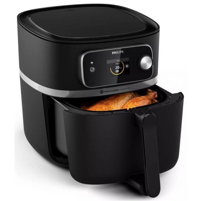 Bez wątpienia zdrowe: twoje potrawy będą smakować dokładnie tak, jak lubisz, ale będą zawierać aż 99%*** mniej dodatkowego tłuszczu. Ponieważ w urządzeniu Airfryer Combi do gotowania wykorzystywane jest gorące powietrze, możesz delektować się przepysznym smakiem potraw bez konieczności stosowania oleju.