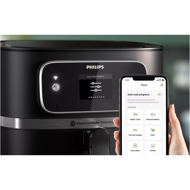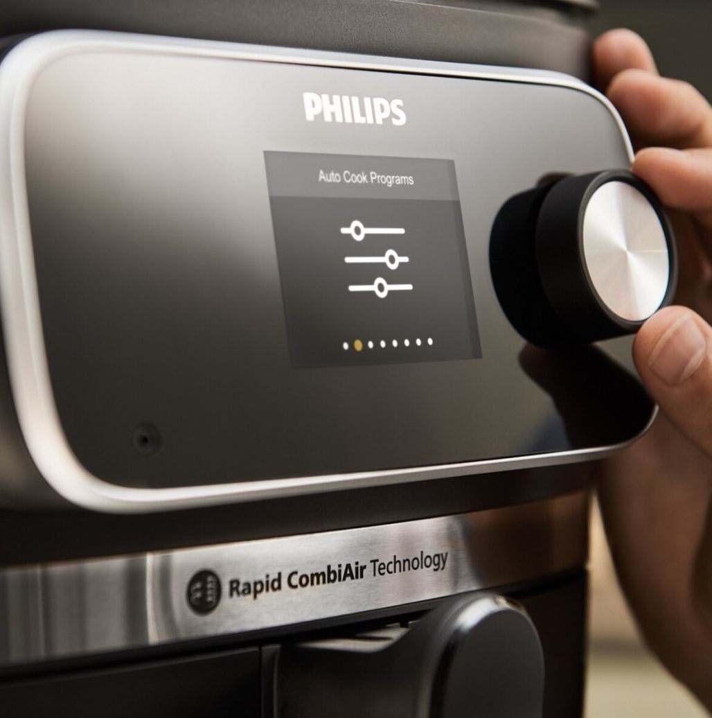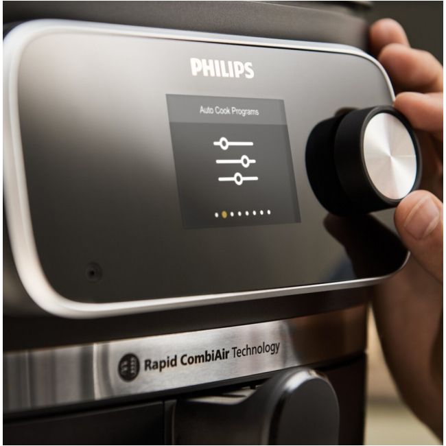 Instrukcje krok po kroku: nowe programy automatycznego gotowania Philips eliminują stres związany z przygotowywaniem posiłku, prowadząc Cię krok po kroku, aby zapewnić uzyskanie najlepszych rezultatów. Wystarczy tylko wybrać składnik, określić ilość i pozwolić urządzeniu Airfryer Combi zrobić całą resztę.