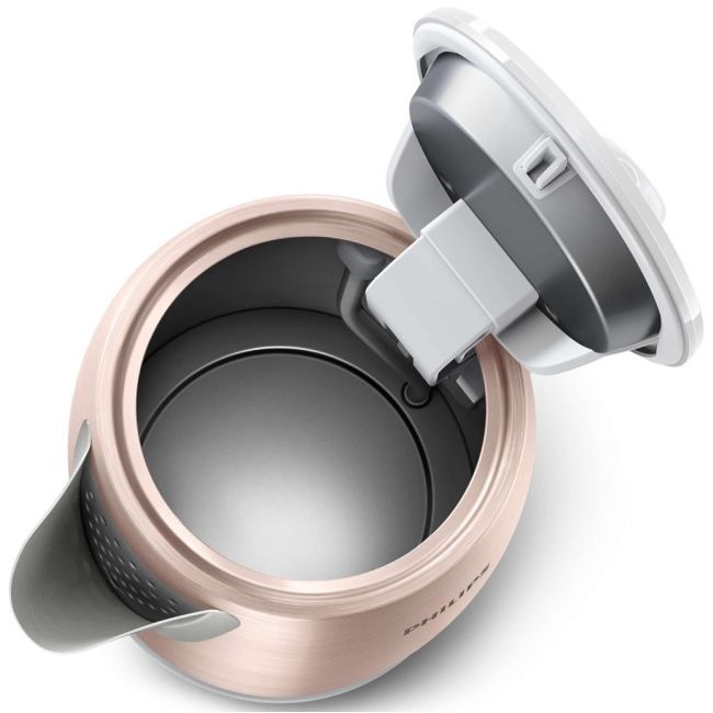 Bezprzewodowy czajnik znajduje się na obrotowej (360°) podstawie, co umożliwia łatwe podnoszenie i odstawianie urządzenia.