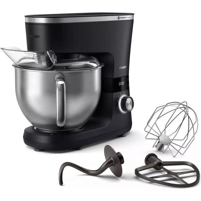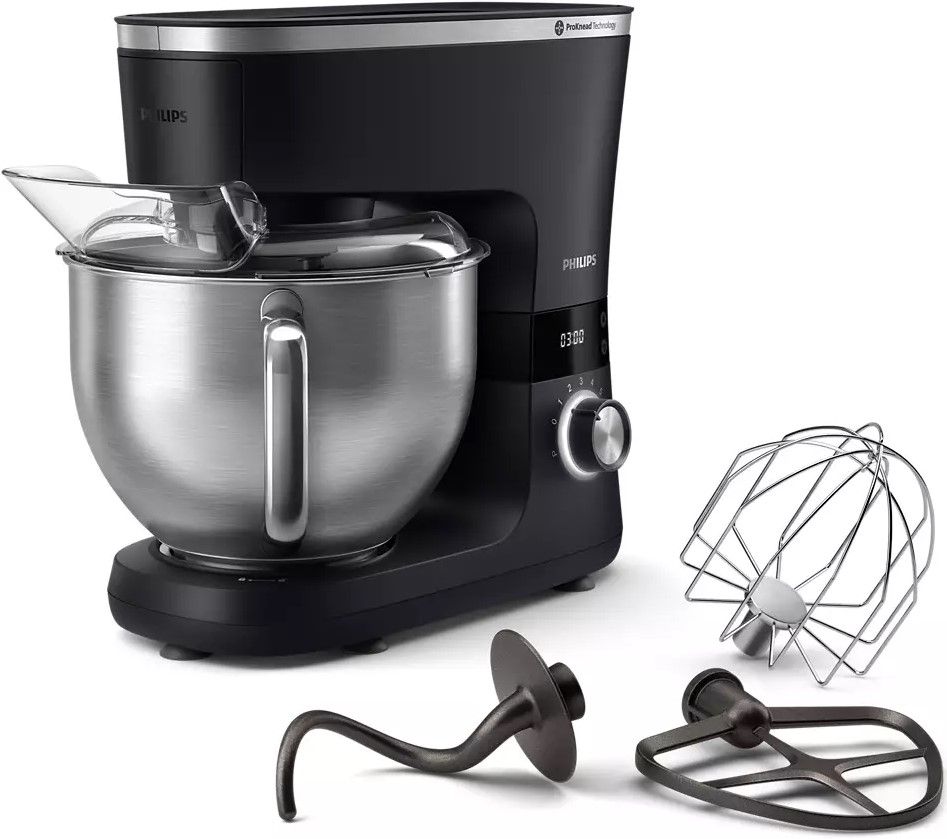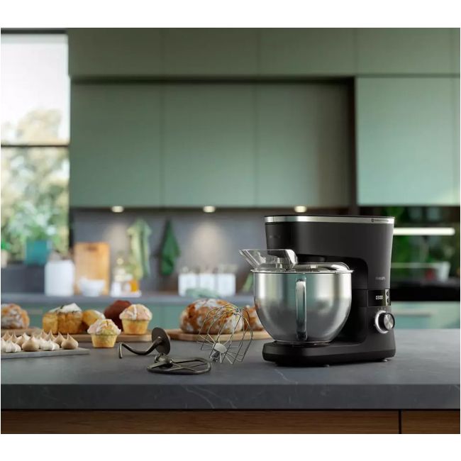 Hak do ciasta, trzepaczka i ubijaczka. Miska 5,5l. Mocny silnik o mocy 1000 W. 8 ustawień prędkości.