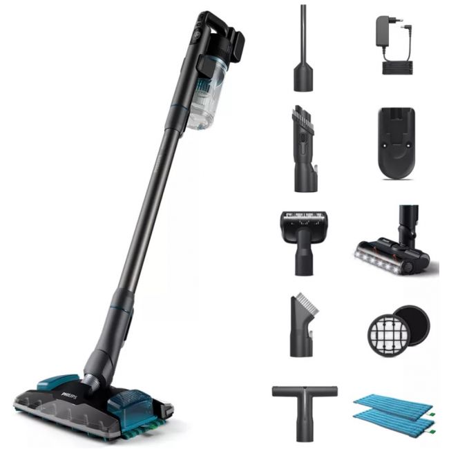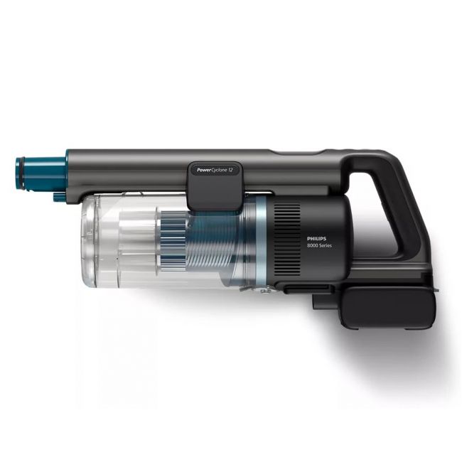Odkurzacz bezprzewodowy Aqua 8000 firmy Philips usuwa plamy i aż 99% bakterii dzięki nasadce odkurzająco-mopującej Aqua Plus⁴. Dzięki technologii PowerCyclone 12 zapewnia maksymalne zbieranie kurzu przy minimalnym zużyciu baterii⁹, pozwalając posprzątać cały dom na jednym ładowaniu⁵.