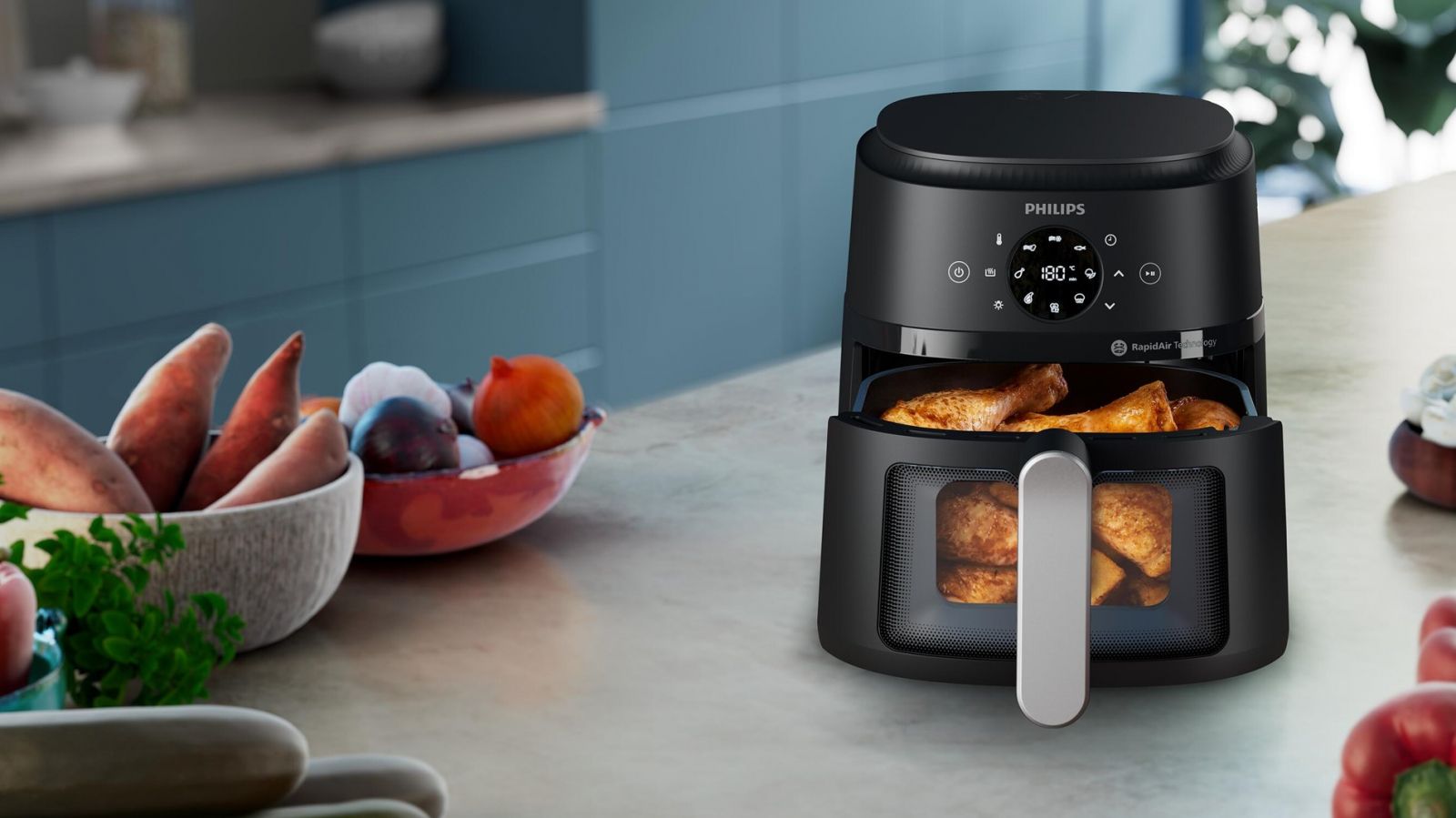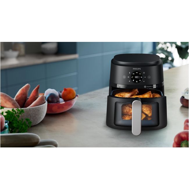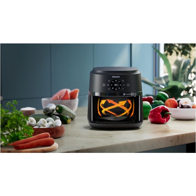 Chrupiące na zewnątrz, delikatne w środku. Unikalna technologia RapidAir oszczędza czas i energię, bez uszczerbku dla smaku. Obserwuj przez okienko, jak Twoje ulubione składniki zamieniają się w pyszne jedzenie w mniej niż 15 minut
