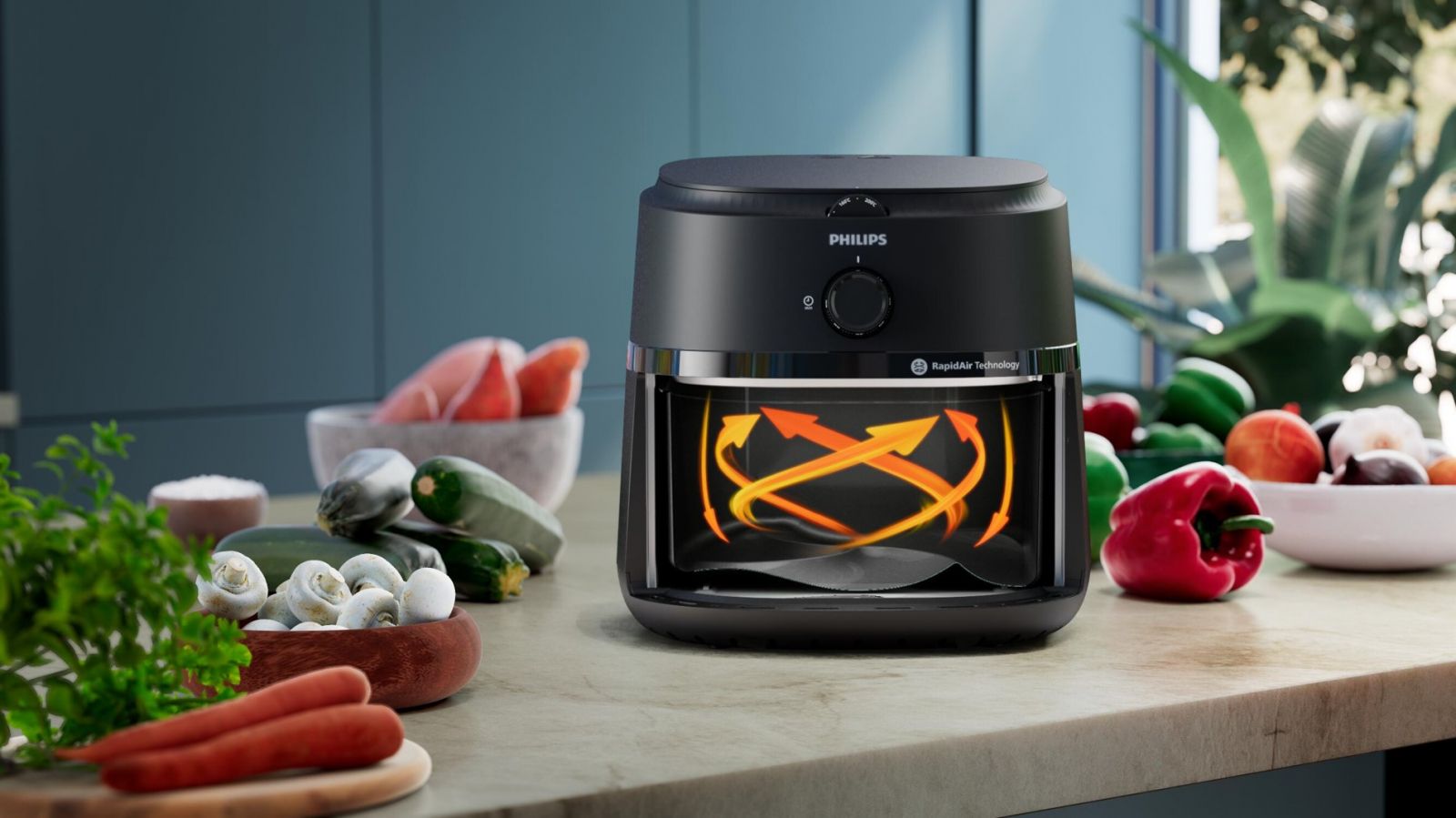 Chrupiące na zewnątrz i delikatne w środku potrawy z niewielką ilością lub bez dodatku oleju. Technologia RapidAir wraz z unikalną płytą Starfish zapewnia doskonały przepływ powietrza oraz szybkie i smaczne dania za każdym razem.