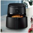 Kompaktowa konstrukcja jest odpowiednia dla kuchni o każdym rozmiarze. Patelnia o pojemności 6,2 l mieści do 800 g frytek, 8 udek z kurczaka lub 800 g warzyw.