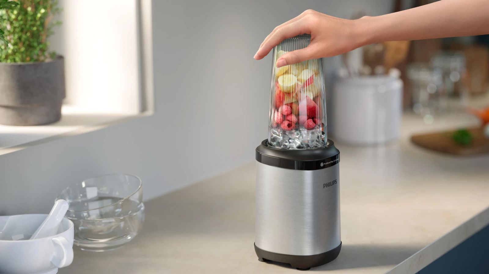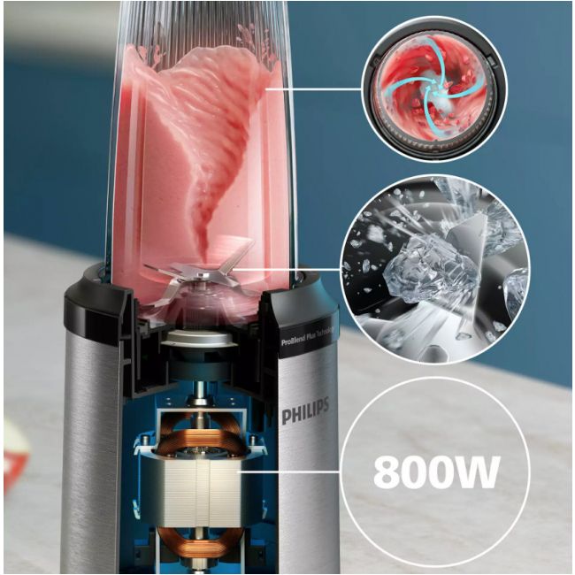 Silnik, ostrza i pojemnik zaprojektowano tak, aby jak najlepiej współpracowały ze sobą i umożliwiały doskonałe blendowanie nawet kostek lodu, orzechów i mrożonych owoców.