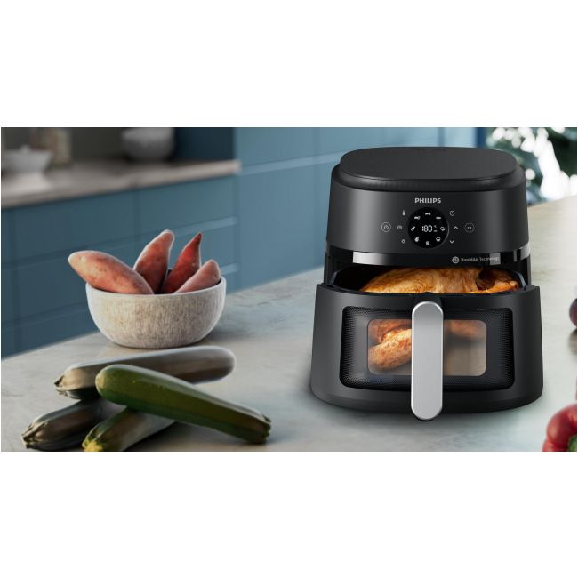 Chrupiące na zewnątrz i delikatne w środku potrawy z niewielką ilością lub bez dodatku oleju. Technologia RapidAir wraz z unikalną płytą StarPlate zapewnia doskonały przepływ powietrza oraz szybkie i smaczne dania za każdym razem.