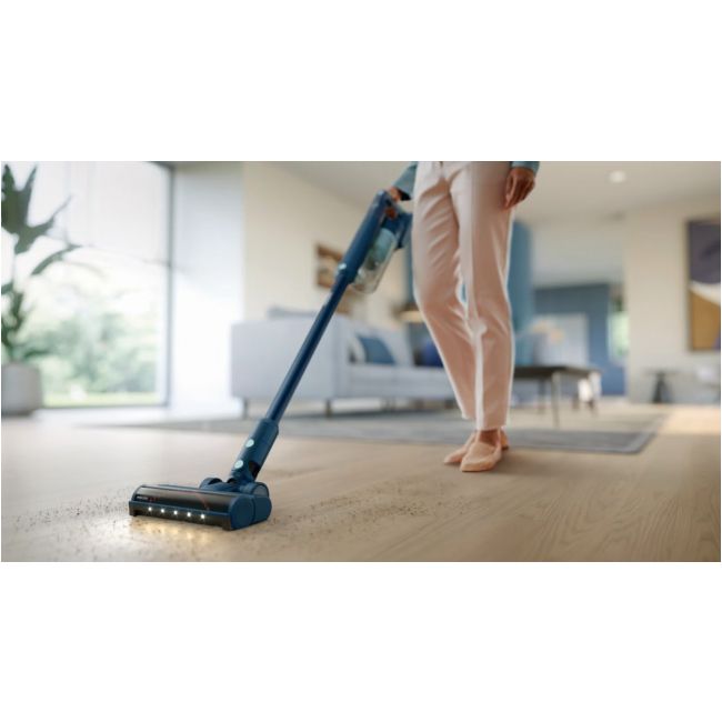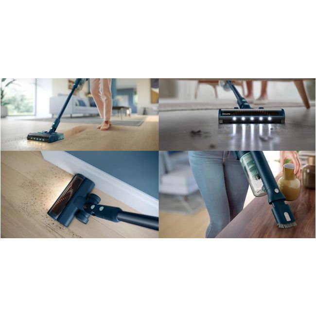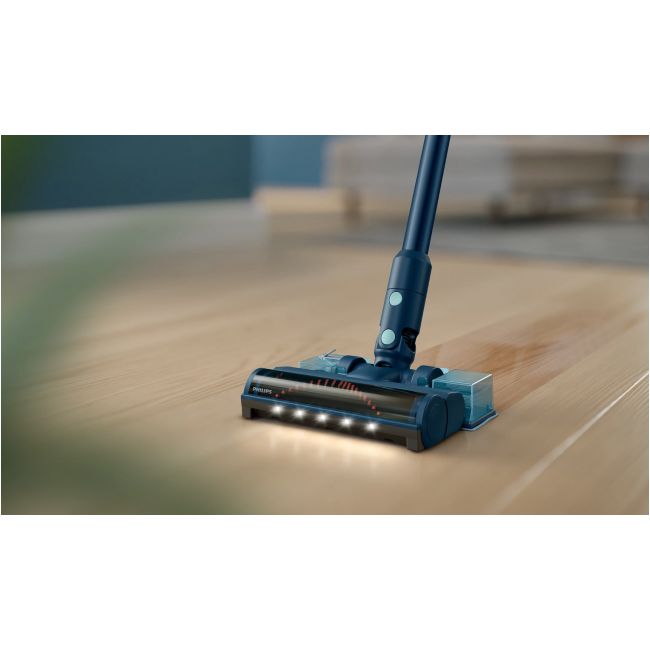 Odkurzacz bezprzewodowy serii Aqua 5000 z nasadką z podświetleniem LED ujawnia nawet ukryty kurz i usuwa go dzięki technologii PowerCyclone 10.