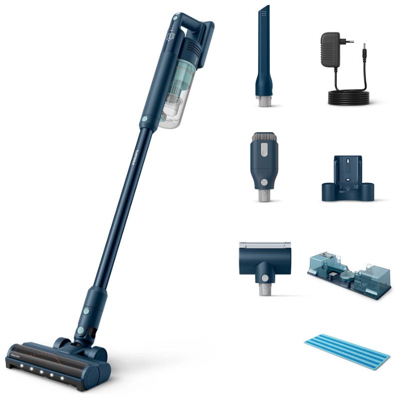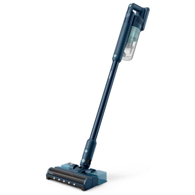 Odkurzacz bezprzewodowy serii Aqua 5000 z nasadką z podświetleniem LED ujawnia nawet ukryty kurz i usuwa go dzięki technologii PowerCyclone 10. Nasadka odkurzaczy z serii Philips 5000 zapewnia idealne czyszczenie zarówno dywanów, jak i twardych podłóg, bez konieczności zmiany nasadki czy urządzenia.
