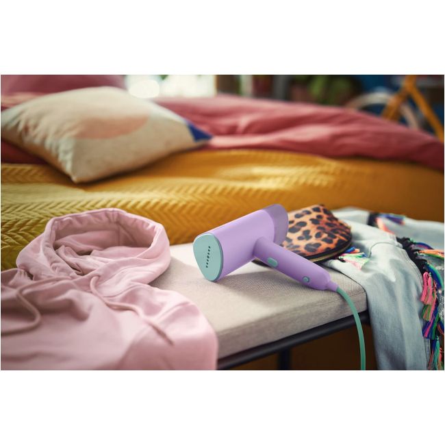 Ręczny steamer z serii 3000 Philips jest wyposażony w pokrowiec, który przydaje się do przechowywania w podróży i w domu.