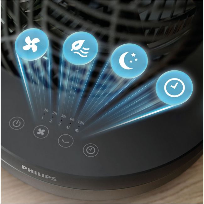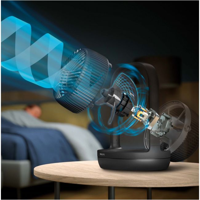 Ciesz się delikatną bryzą lub mocniejszym podmuchem powietrza dzięki wszechstronnemu wentylatorowi Philips, który oferuje 3 ustawienia prędkości, tryb naturalnej bryzy i cichy tryb nocny. Wybierz ustawienie, które najbardziej Ci odpowiada, rozsiądź się wygodnie i zrelaksuj.