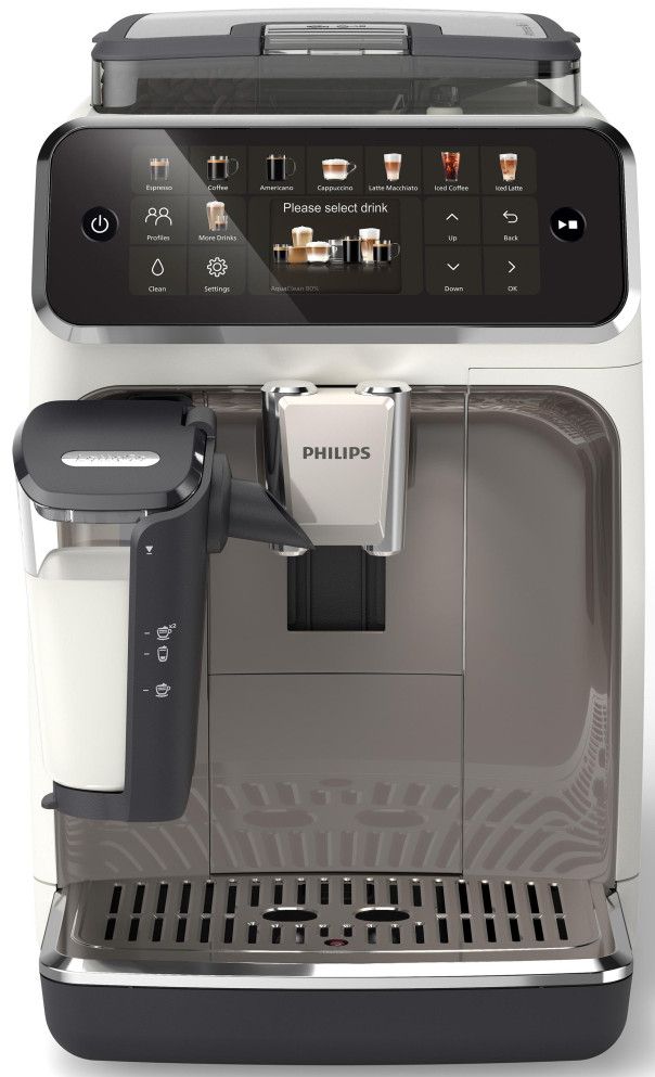 - Regulowana wysokość wylewki kawy: 85–145 mm - System spieniania mleka LatteGo - Ceramiczny młynek - 12-stopniowa regulacja młynka - Pojemność pojemnika na mleko: 0,26 l - Profile użytkownika: 4 + profil gościa - QuickStart - Funkcja Extra Shot