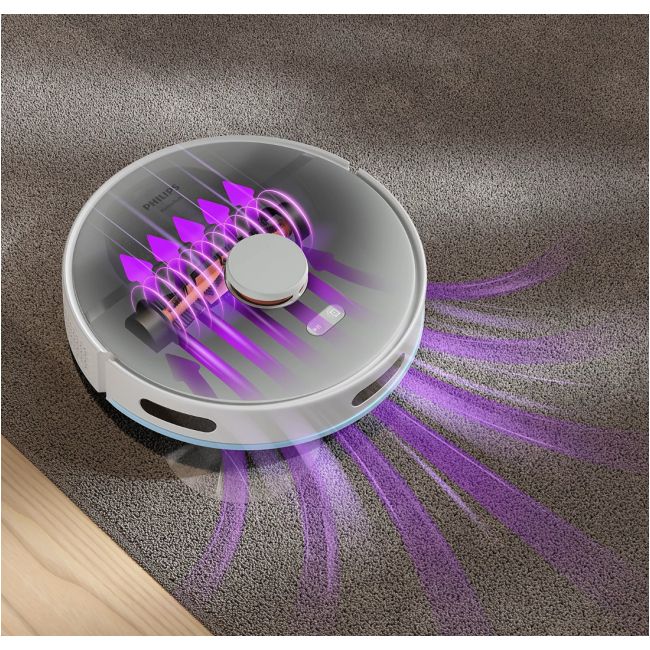 Robot automatycznie zwiększa moc ssania, gdy znajduje się na dywanie, aby zebrać drobne cząsteczki kurzu ukryte głęboko w dywanie.