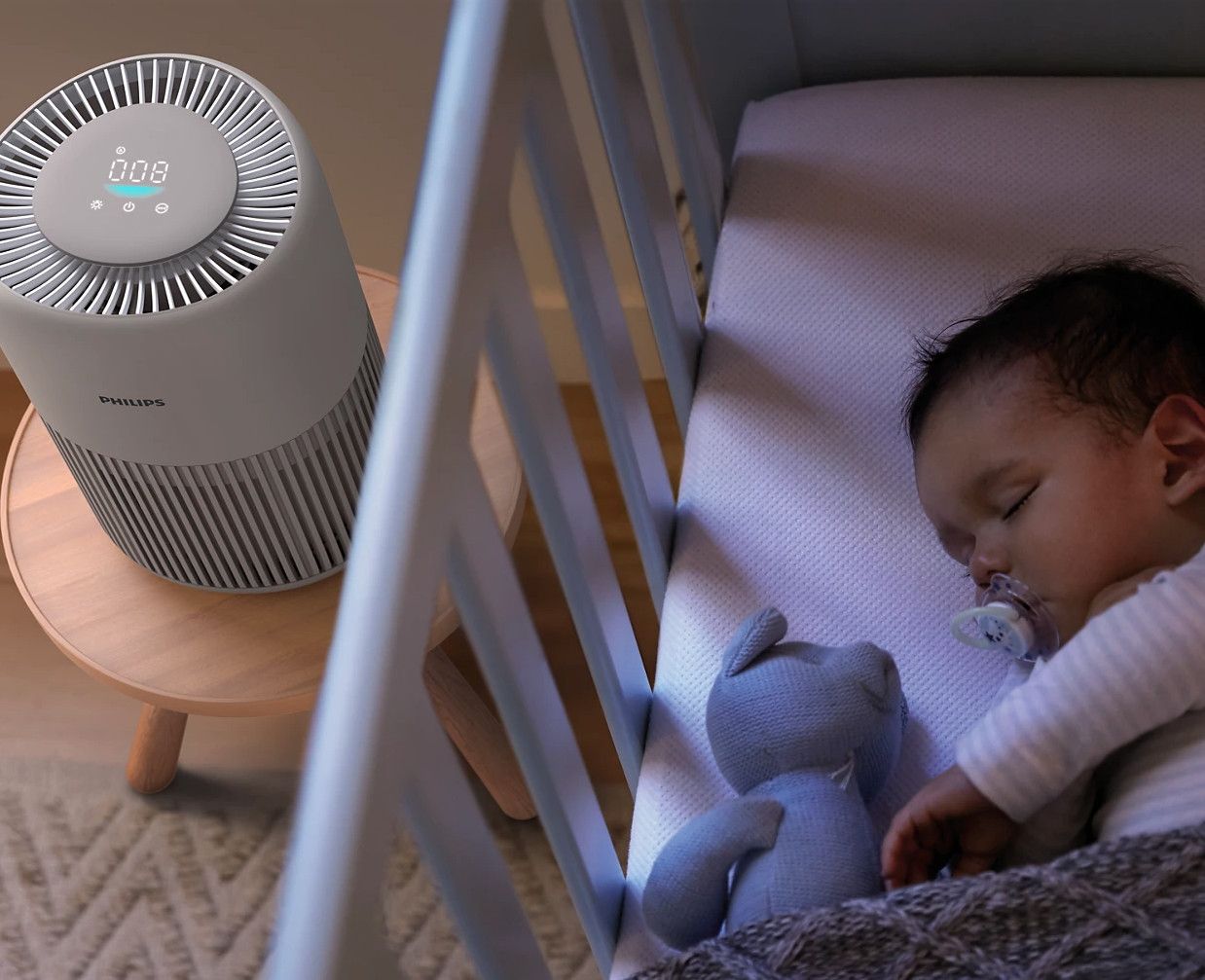 Ciesz się spokojnym snem dzięki naszemu innowacyjnemu oczyszczaczowi. W trybie gotowości nie przekracza 20,5 dB (5), czyli mniej niż szept. Ponadto światło z wyświetlacza cyfrowego jest redukowane, co ogranicza zanieczyszczenie światłem.