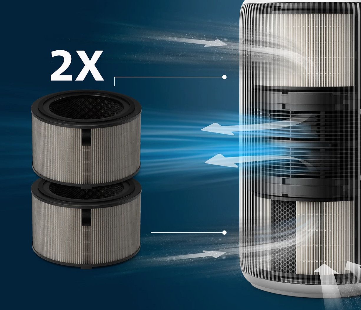 Kompatybilne modele wymagają jednoczesnego użycia obu filtrów, aby umożliwić optymalną filtrację. Wystarczy włożyć jeden do dolnej części oczyszczacza powietrza, a drugi do górnej części.