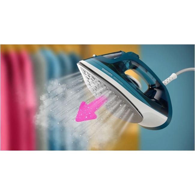 Lekkie żelazko parowe z serii DST2000 pozwala na prasowanie bez wysiłku. Silny strumień pary do 25 g/min i uderzenie pary skutecznie radzą sobie z trudnymi zagnieceniami, a ceramiczna stopa zapewnia gładki poślizg na wszystkich tkaninach nadających się do prasowania