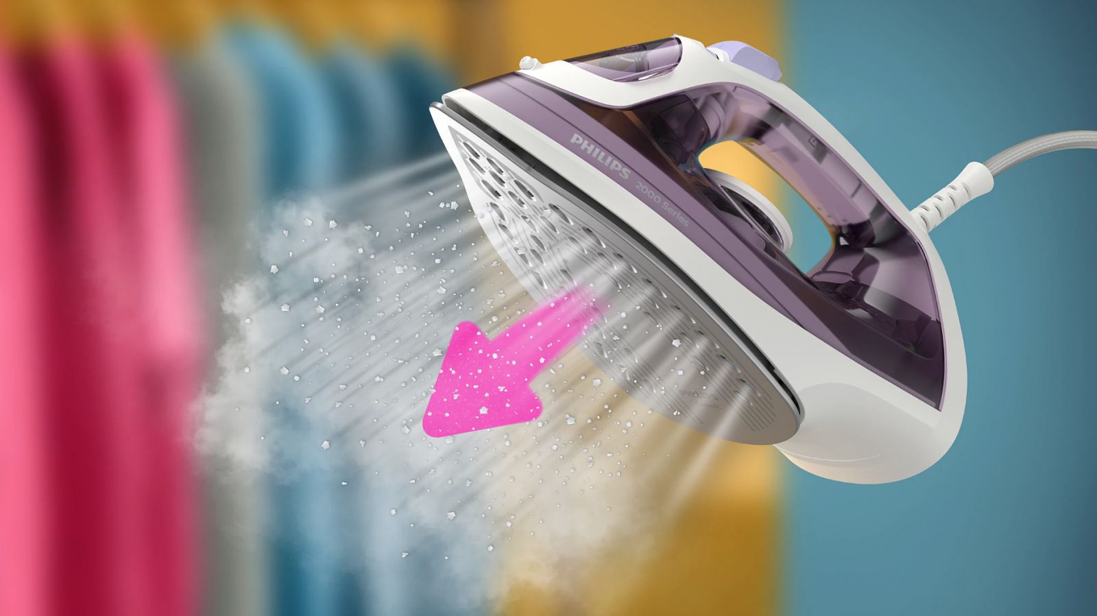 Funkcja Calc-Clean umożliwia łatwe usuwanie kamienia z żelazka. Aby utrzymać żelazko w optymalnym stanie, używaj tej funkcji raz w miesiącu, jeśli korzystasz z wody z kranu.