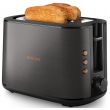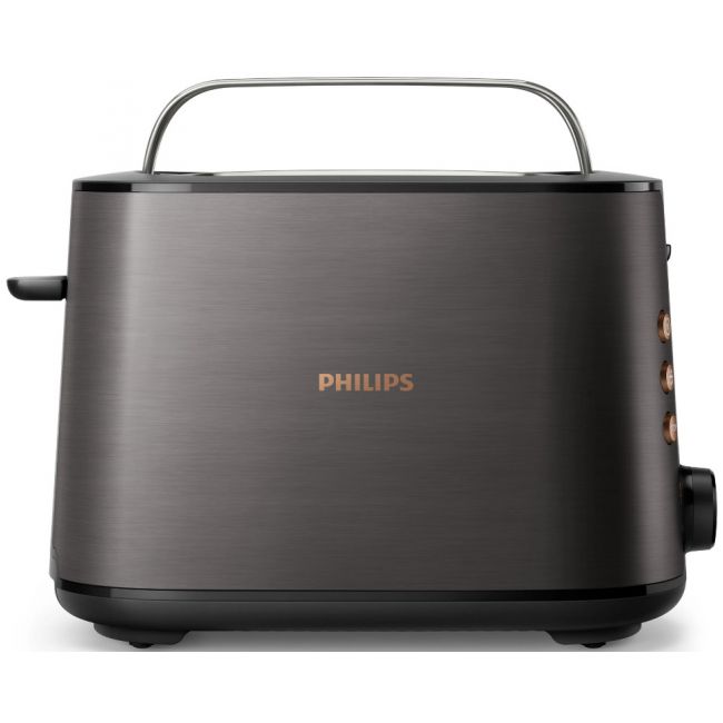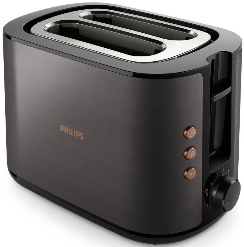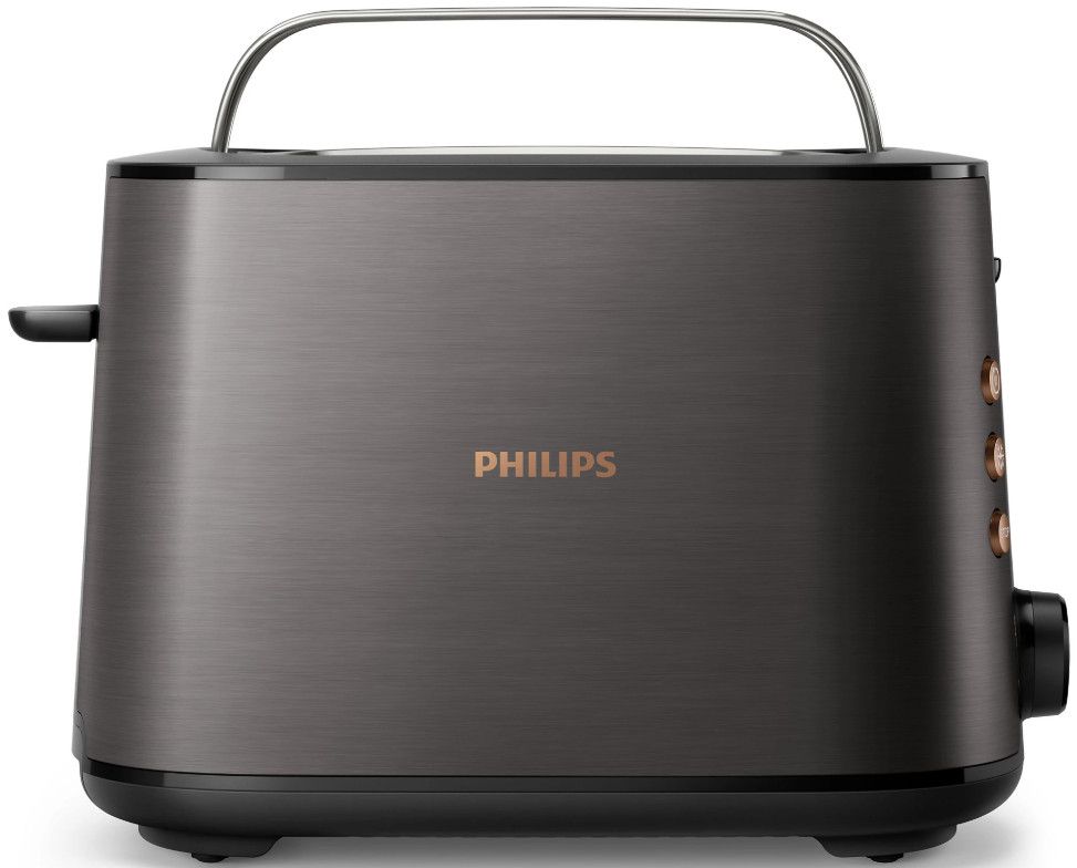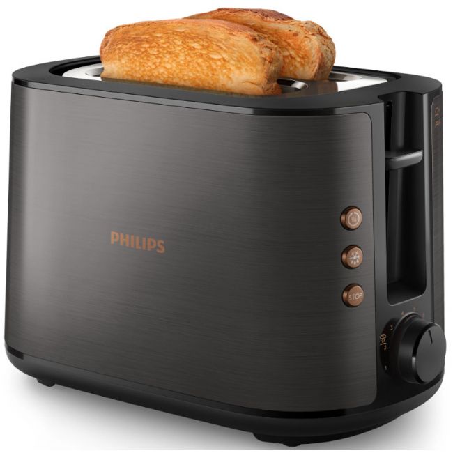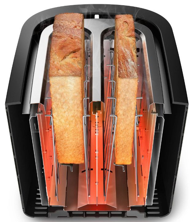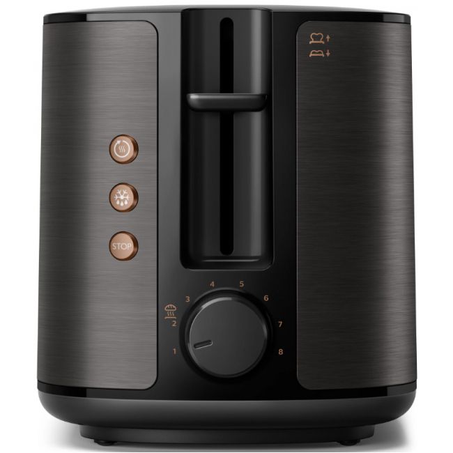 Toster w całości wykonany z metalu z szerokim, wyśrodkowanym otworem umożliwiającym równe przyrumienienie pieczywa niezależnie od jego grubości. Dzięki różnym opcjom opiekania i wbudowanemu rusztowi do podgrzewania bułek toster gwarantuje idealnie chrupiące rezultaty, niezależnie od tego czy przygotowujesz tosty, ciastka czy bułki.
