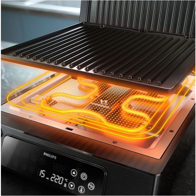 Moc 2200 W szybko nagrzewa płyty grilla i utrzymuje precyzyjną, stałą temperaturę, zapewniając doskonałe rezultaty.