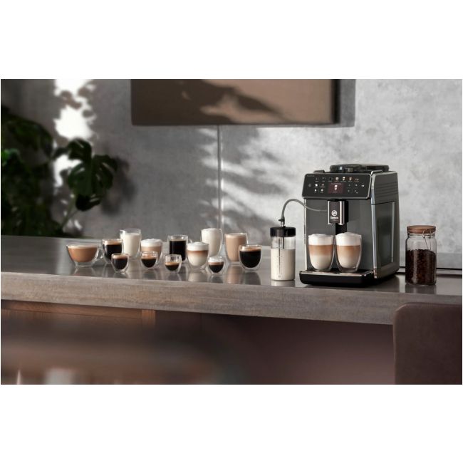 Intuicyjnie dostosuj i przygotuj aromatyczną kawę, taką jak Cappuccino czy Latte Macchiato, z zaprogramowanymi profilami smakowymi dzięki technologii CoffeeMaestro. Ciesz się jedwabistą mleczną pianką, nawet w przypadku przygotowywania dwóch napojów mlecznych jednocześnie.
