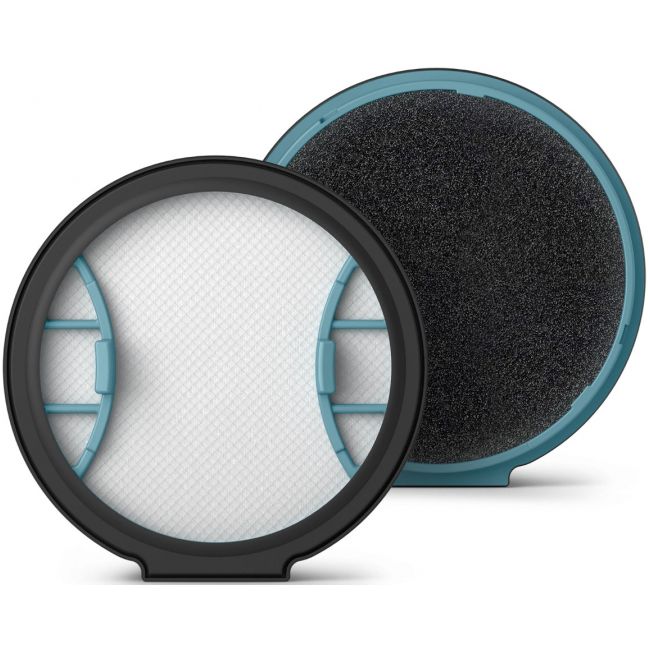 Filtr zamienny zgodny z bezprzewodowymi odkurzaczami serii 2000 oraz 3000 firmy Philips. Obejmuje filtr piankowy z możliwością mycia i filtr wlotowy z ramką. Filtr piankowy można łatwo umyć, aby zapewnić lepszą wydajność na dłużej.