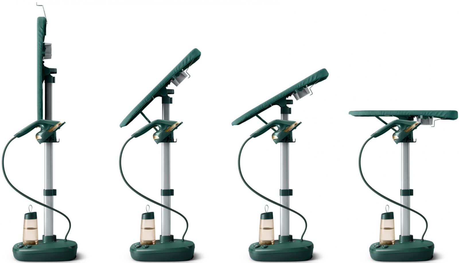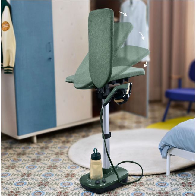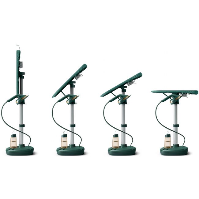 Deskę do prasowania można ustawić w dowolnej pozycji pod wieloma kątami, co zapewnia wygodne użytkowanie. Pozycja pozioma sprawdzi się do prasowania sztywnych tkanin, a pionowa do parowania delikatnych ubrań.
