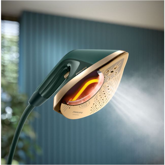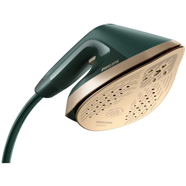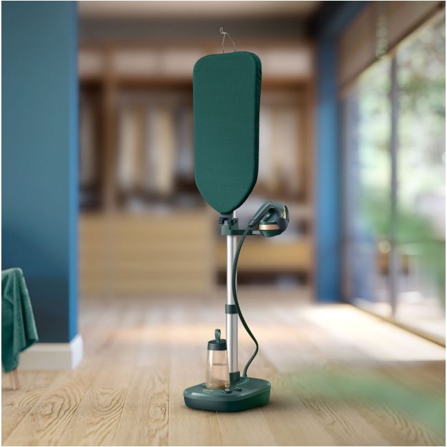 - Zintegrowana deska z dużym zakresem regulacji - Wbudowane kółka - Stopa żelazka: Ceramiczna - Głowica Iron+ ze zwężaną końcówką - Inteligentny system Calc-Clean - Technologia OptimalTemp - Prasowanie w pionie - Silne uderzenie pary: 90 g - Przycisk włączania pary - Bezpieczeństwo dla każdej tkaniny - Chowany górny haczyk - Przyciski nożne w podstawie - Odłączany zbiornik na wodę