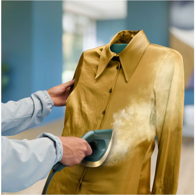 Wydajny silnik generuje do 45 g pary na minutę, aby rozprasować trudne zagniecenia, a spiczasta końcówka żelazka pomaga osiągnąć precyzyjne rezultaty.