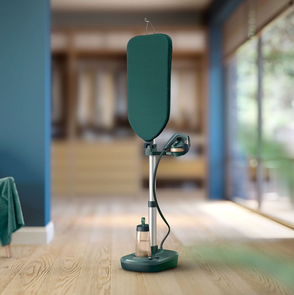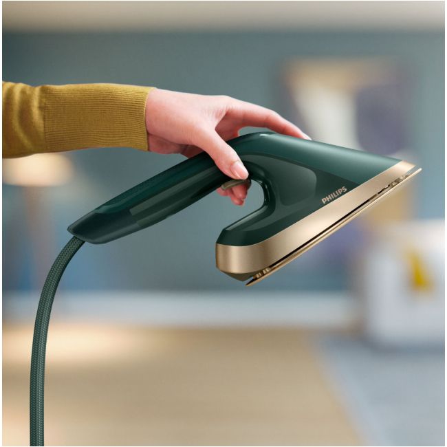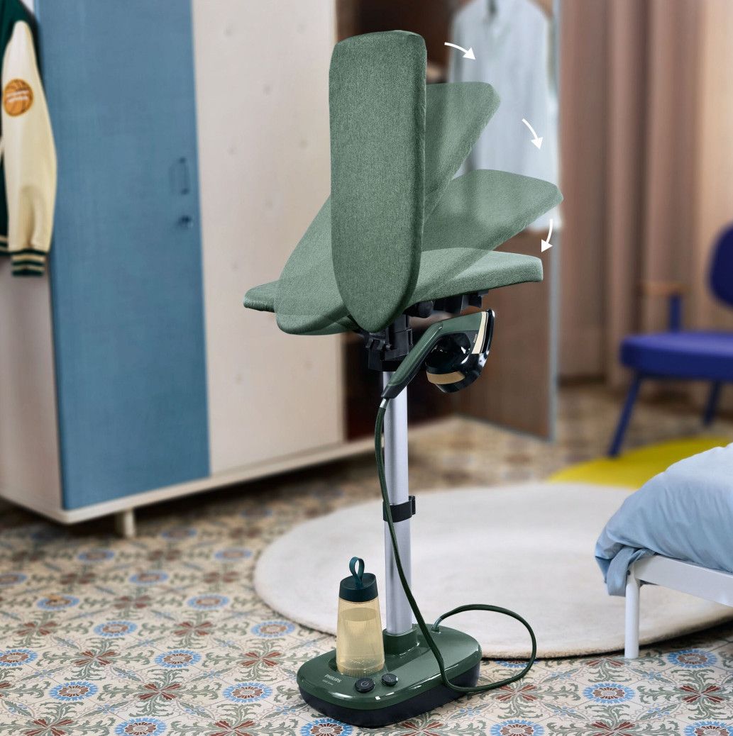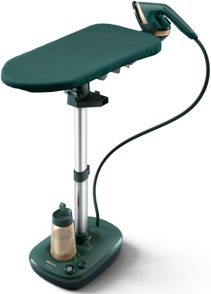 System Philips All-in-One serii 6000 to inteligentne rozwiązanie, dzięki któremu zawsze będziesz wyglądać najlepiej. Elegancki zestaw żelazka, parownicy i deski 3 w 1 pomaga szybko usunąć zagniecenia z ubrań w dowolnej pozycji pionowej, poziomej lub pochylonej.