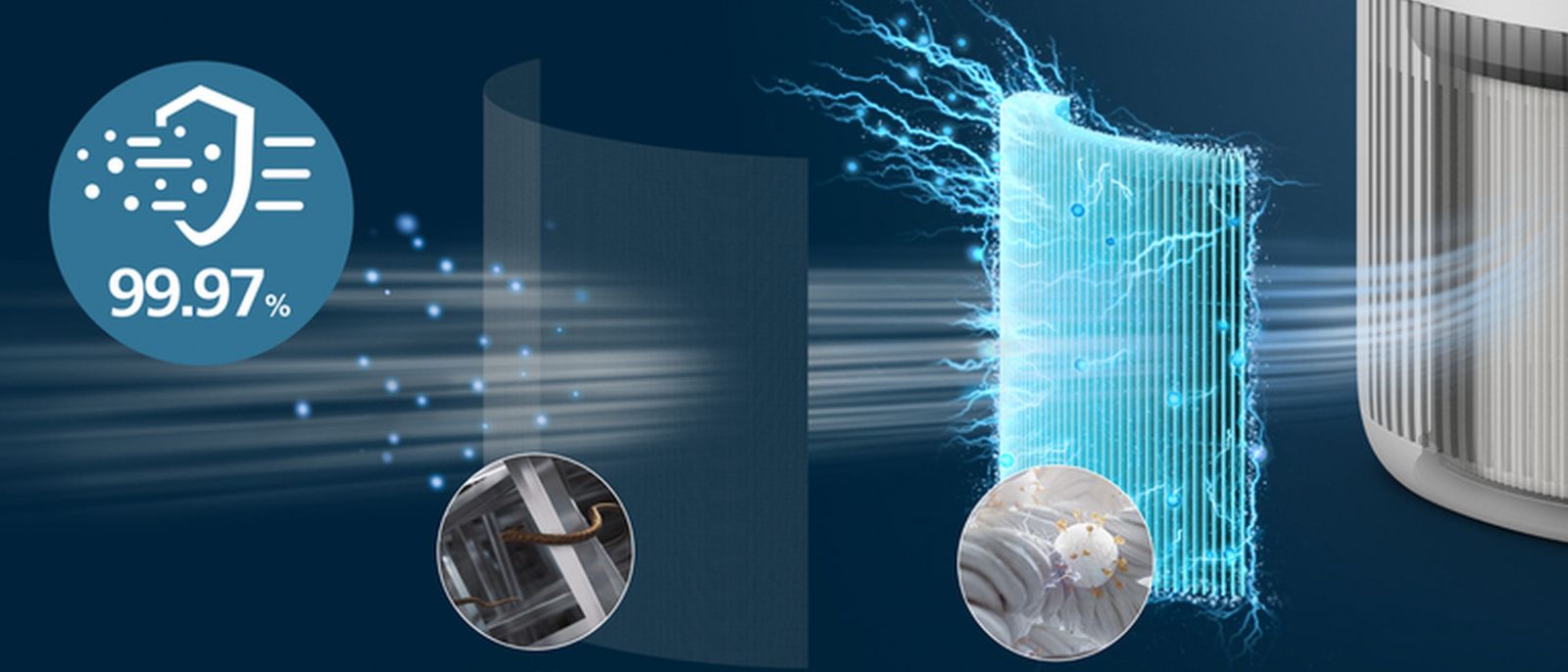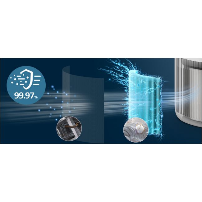 2-warstwowy system filtracji złożony z filtra wstępnego i filtra NanoProtect HEPA wychwytuje 99,97% cząsteczek o wielkości zaledwie 0,003 mikrona (1), chroniąc przed zanieczyszczeniami, wirusami, alergenami i bakteriami.