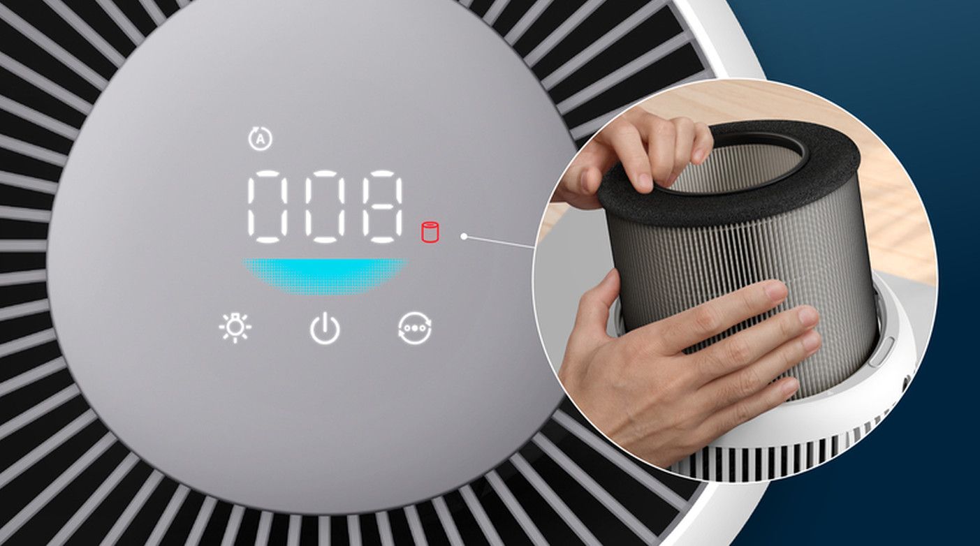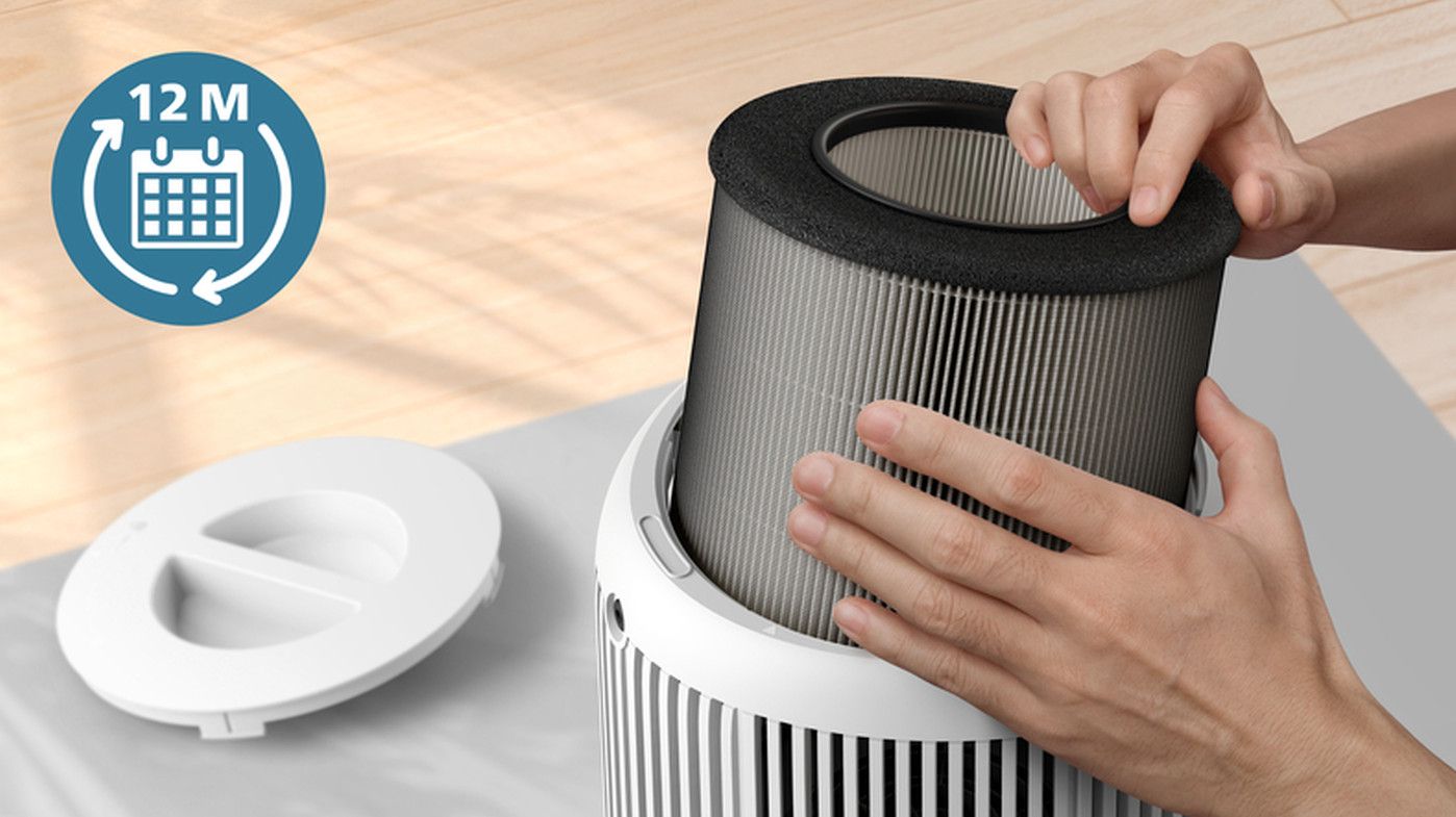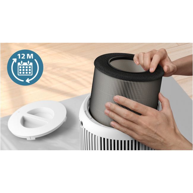Oczyszczacz powietrza Philips powiadamia o konieczności wymiany filtra za pomocą wskaźnika na wyświetlaczu. Konserwacja nie wymaga wysiłku i zajmuje mniej niż minutę.